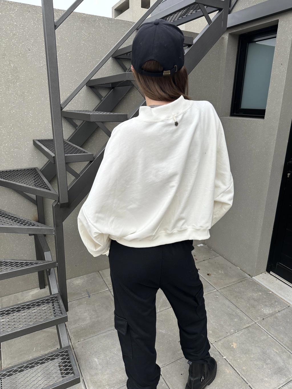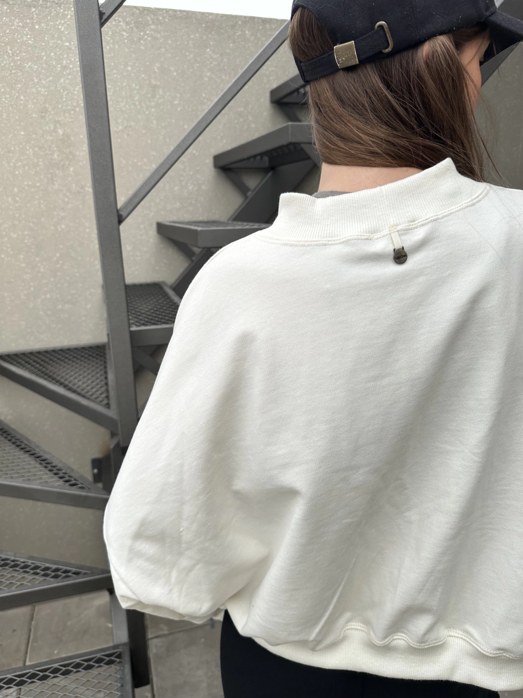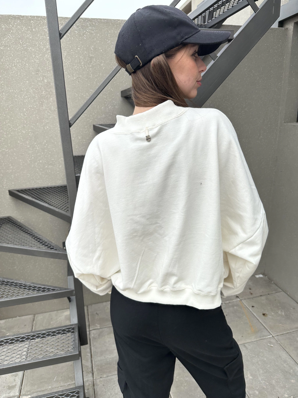 Buzo de algodón gamuzado en un sofisticado tono off white. Este modelo oversize ofrece un corte a la cadera, perfecto para un look relajado y moderno. Los detalles de ribb a tono añaden un toque distintivo y elegante, garantizando comodidad en todo momento.
