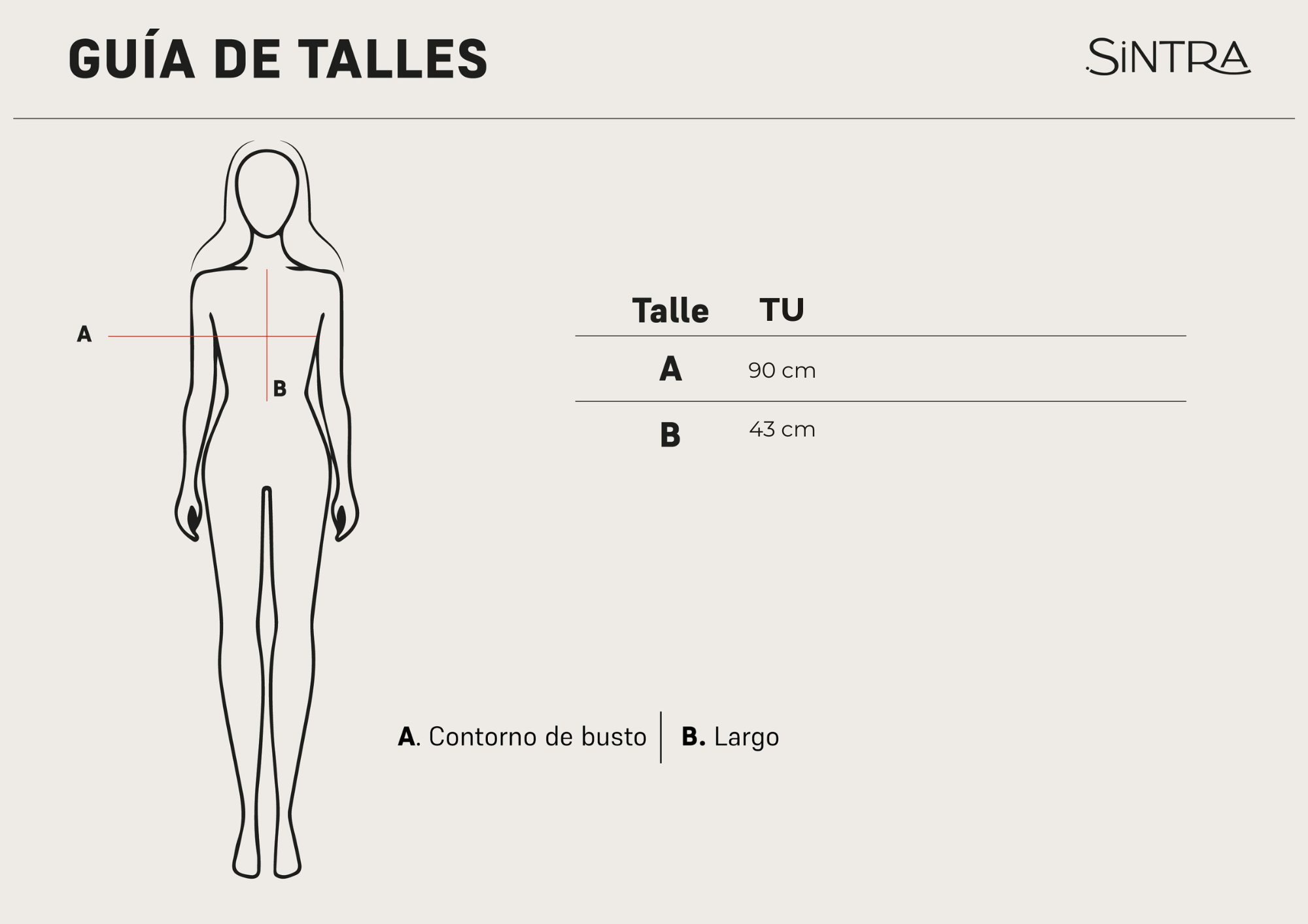 Talles: Consulta nuestra guía para elegir el que mejor se adapte a vos. Las medidas de esta prenda son aproximadas.