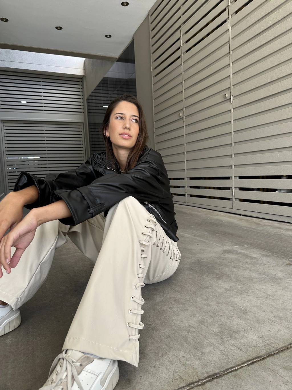 Este pantalón wide leg está confeccionado en ecocuero de alta calidad y fue intervenido manualmente, presentando ojalillos en sus laterales que aportan un toque distintivo y moderno. Cada prenda es única debido a su intervención artesanal, garantizando que lleves algo exclusivo.