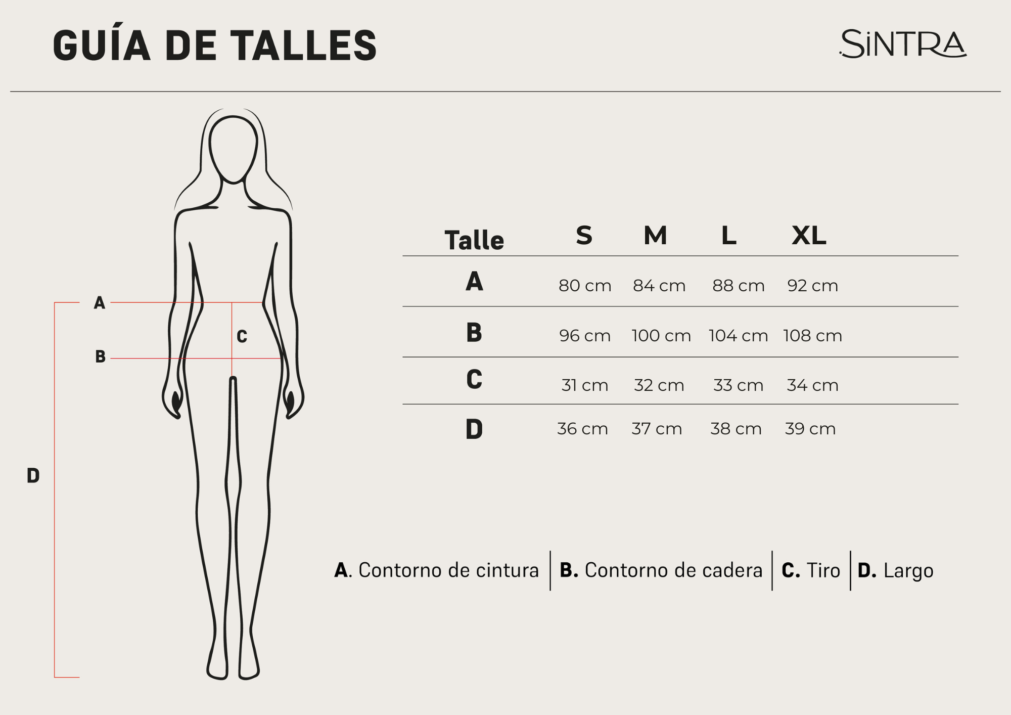 Las medidas de la cintura del short se tomaron con el cordón levemente ajustado, por lo que puede adaptarse ligeramente a unos cm más o menos de las dimensiones detallas en la tabla de talles.